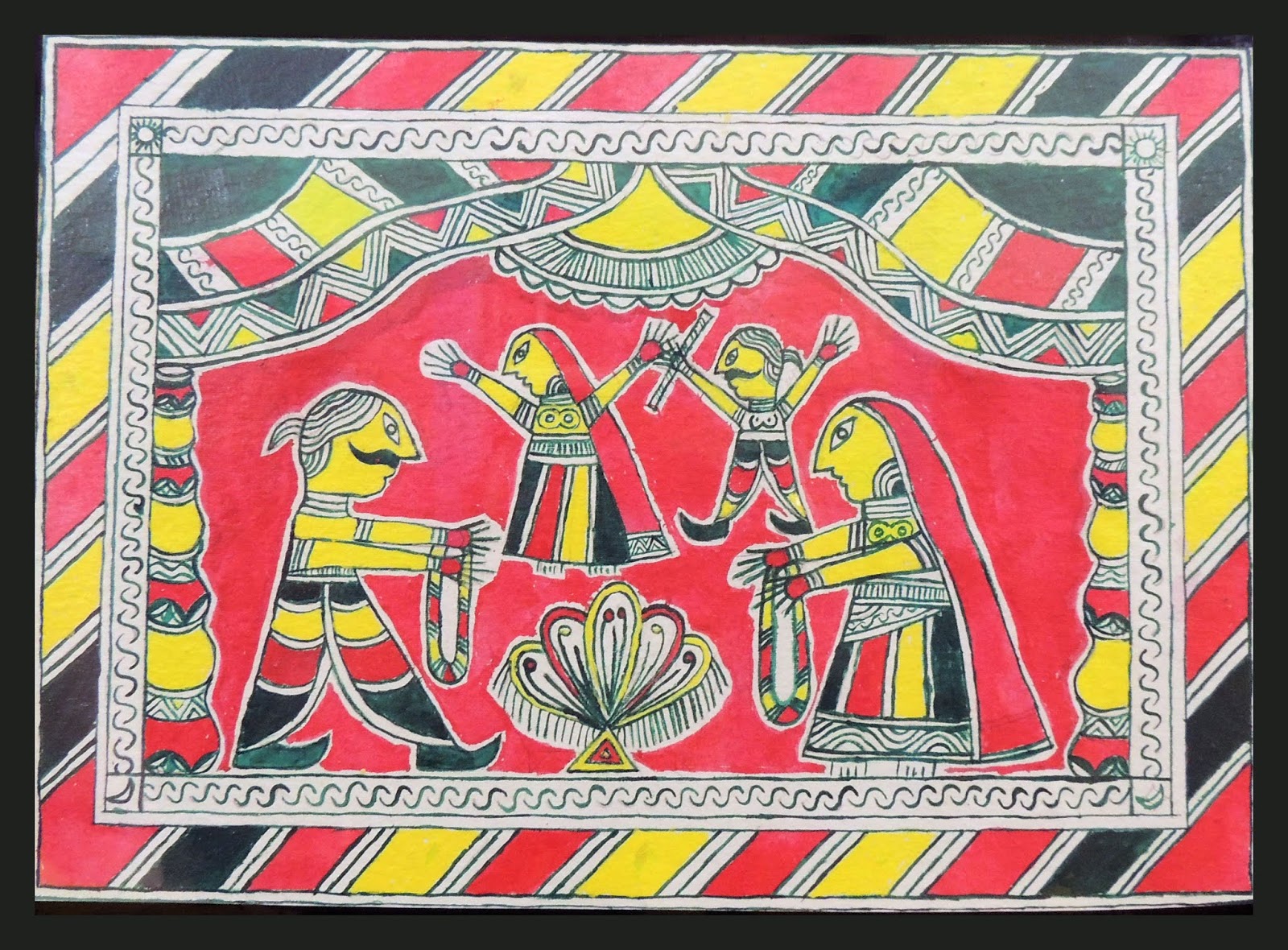 Manjusha art is believed to be the only art form in the history of India which has a sequential representation of the story and is displayed in a series pictorially. This is also called a scroll painting.